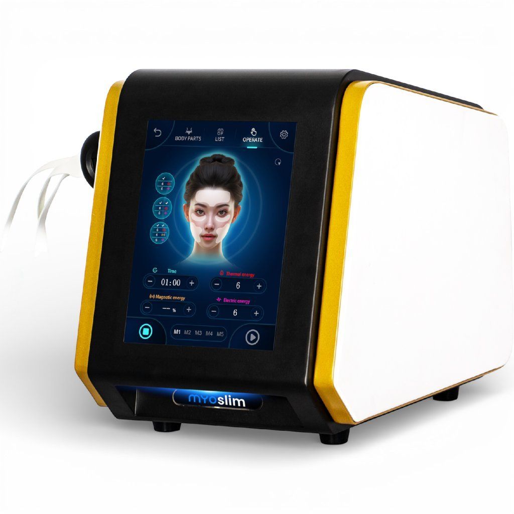 Das Myoslim Face Gold ist ein professionelles EMS Gesichtslifting Gerät mit RF Technologie, das speziell für nicht-invasive Anti-Aging Behandlungen im Kosmetikstudio entwickelt wurde.